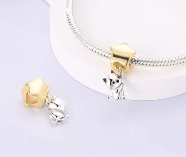 This adorable charm represents that moment when you hold on to your dreams, even when they seem so high above you. A sweet, curious little silver kitten dangling from a golden star: a magical scene that conveys tenderness, strength, and hope.